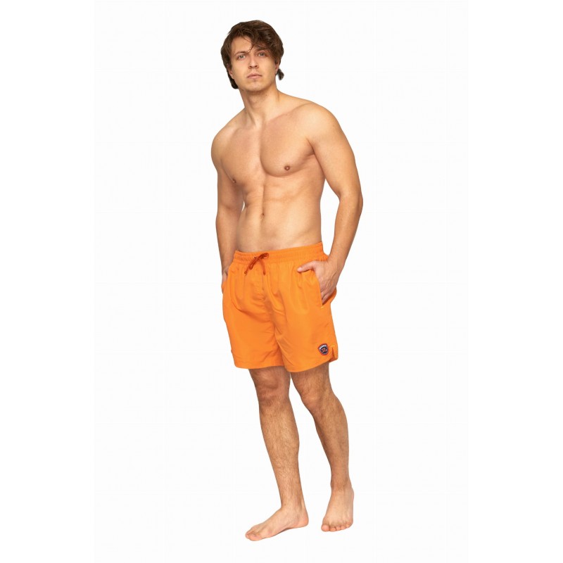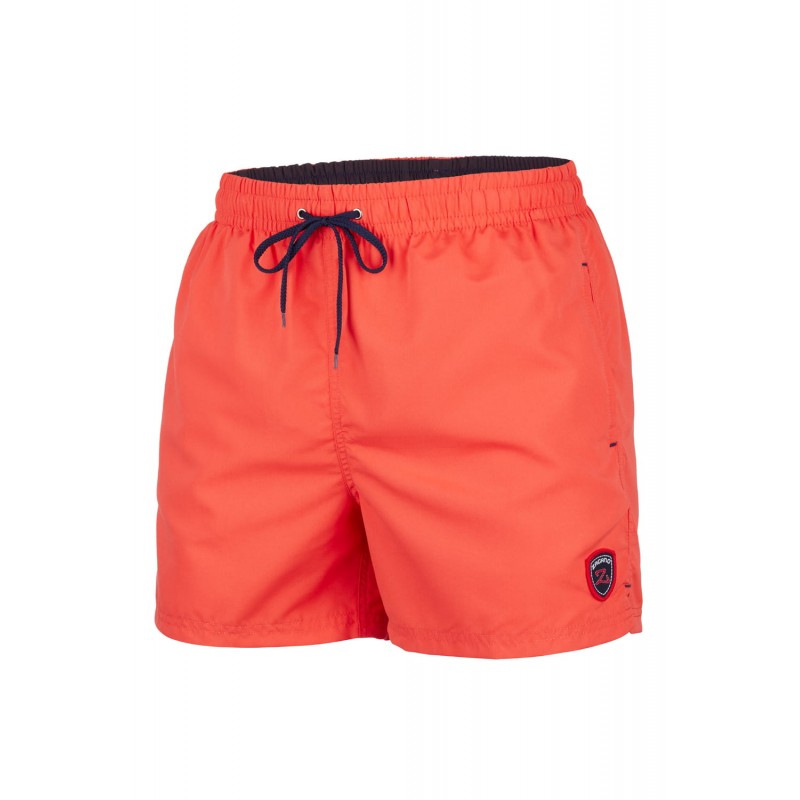 Szorty męskie z dodatkowo wszytymi wewnętrznymi slipkami z siateczki. Kieszenie boczne. W pasie gumka i sznurek.